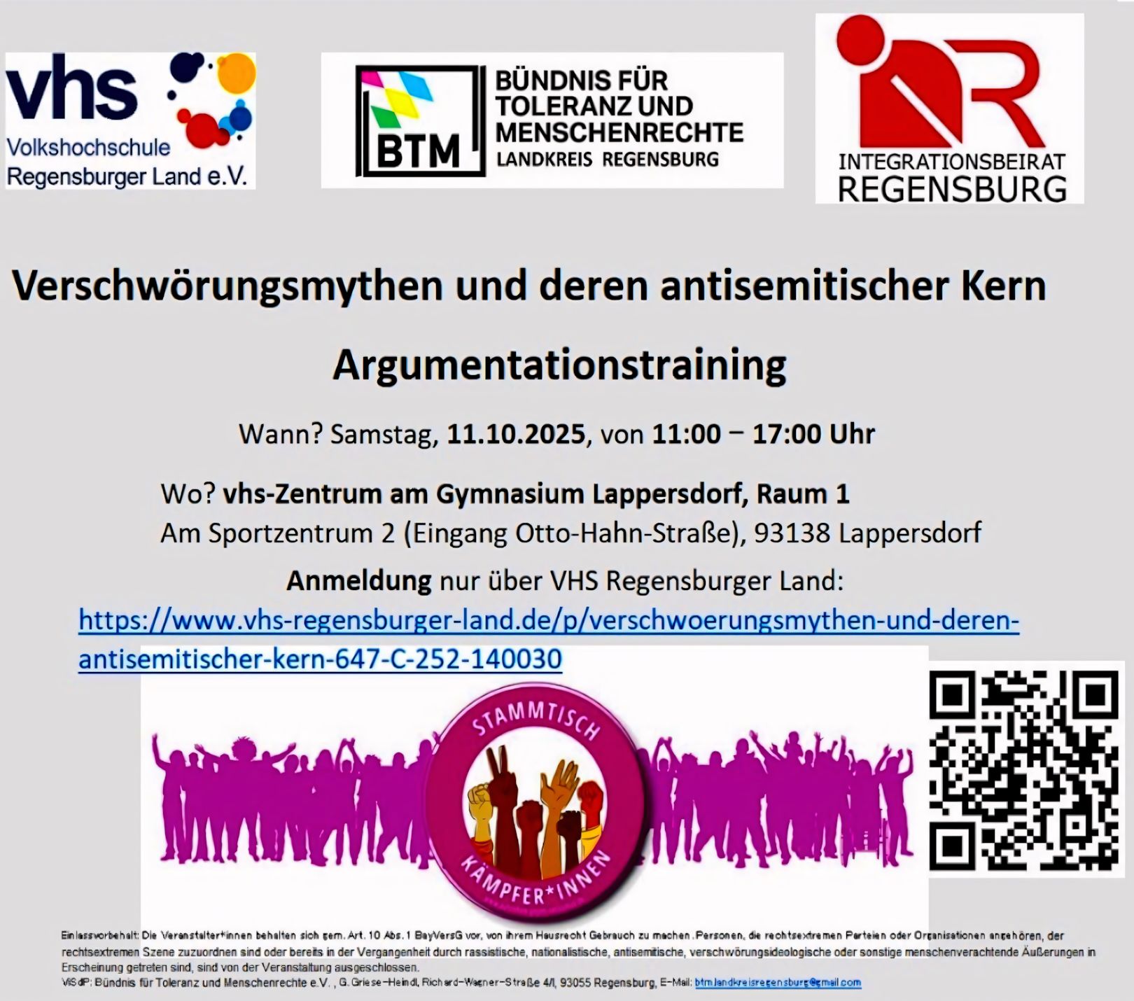 In Kooperation mit dem Bündnis für Toleranz und Menschenrechte im Landkreis Regensburg e.V. Gefördert durch den Integrationsbeirat Regensburg. Eine Veranstaltung im Rahmen der Interkulturellen Wochen 2025.
