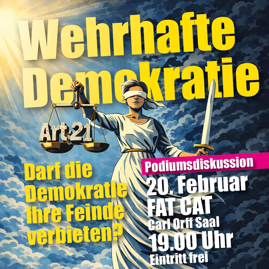 Die Diskussion um ein mögliches Parteiverbot wird in der Zivilgesellschaft intensiv und kontrovers geführt. Mit dieser Veranstaltung, die wir zusammen mit den Deutschen Juristinnenbund durchführen, wollen wir einen Beitrag zu dieser wichtigen Debatte leisten und gemeinsam ausloten: Wo sind die rechtlichen Grenzen? Welche Erfahrungen gibt es? Und welche Instrumente stehen einer wehrhaften Demokratie zur Verfügung?