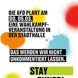 Die Veranstalter*innen behalten sich vor, von ihrem Hausrecht Gebrauch zu machen und Personen, die rechtsextremen Parteien oder Organisationen angehören, die der rechtsextremen Szene zuzuordnen sind oder bereits in der Vergangenheit durch rassistische, nationalistische, antisemitische oder sonstige menschenverachtende Äußerungen in Erscheinung getreten sind, den Zutritt zur Veranstaltung zu verwehren oder sie von dieser auszuschließen.
