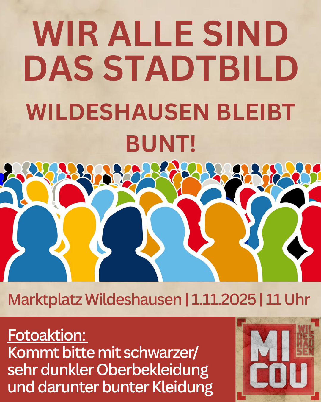 Dagegen setzen wir ein klares Zeichen: Wildeshausen lässt sich nicht spalten. Wir stehen für gegenseitigen Respekt, Solidarität und die Gleichwertigkeit aller Menschen. Wir treten dafür ein, dass niemand aufgrund seiner Herkunft, Hautfarbe, Religion, Sprache oder Lebensweise ausgegrenzt wird.