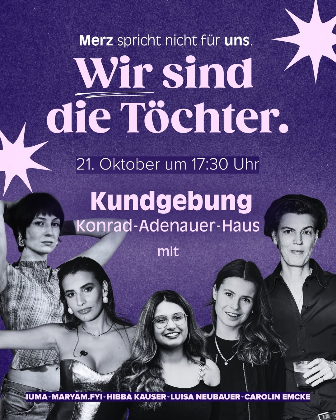 Merz sagt, wir sollten „die Töchter“ fragen wo das Problem im Stadtbild liegt. Wir sind die Töchter – und wir haben keine Lust, für rassistische Aussagen instrumentalisiert zu werden.
