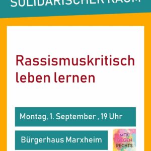 19:00Solidarischer Raum: Rassismuskritisch leben lernenOffenes TreffenAbgelaufen