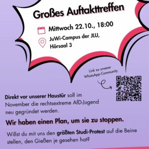 18:00Großes Auftakttreffen – Studis Gegen RechtsOffenes TreffenAbgelaufen