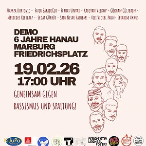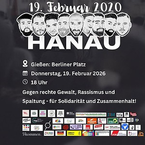 19:30SAY THEIR NAMES: Gedenkveranstaltung anlässlich des 6. Jahrestages des rassistischen Terroranschlags am 19.02.2020 in HanauEventAbgelaufen