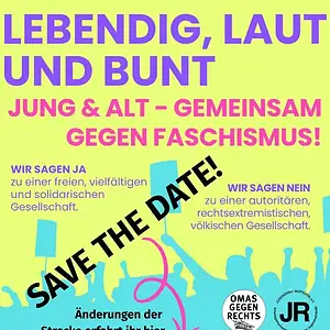 14:30Lebendig, laut und bunt – Jung und alt gemeinsam gegen den Faschismus!Demo