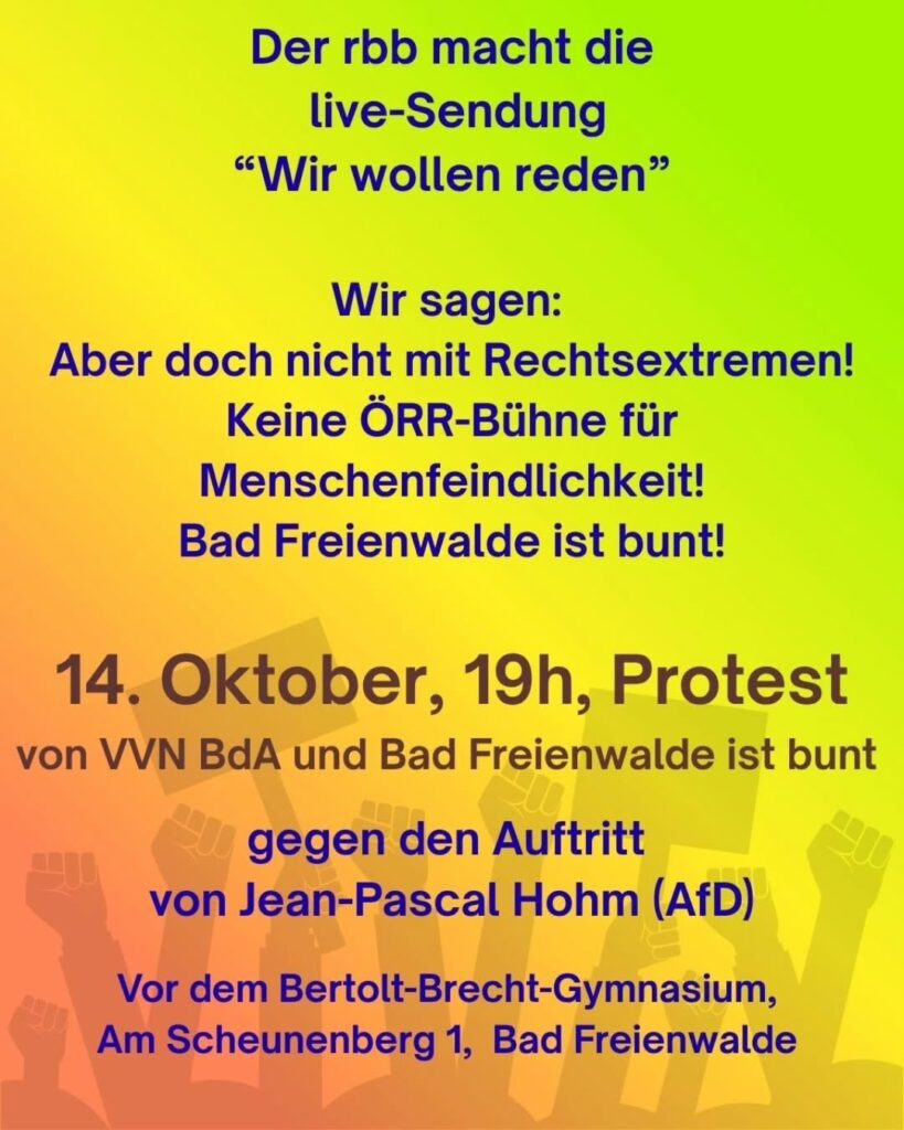 Am Dienstag protestieren wir gemeinsam in Bad Freienwalde gegen die Live-Sendung “Wir wollen reden” des rbb und insbesondere gegen den […]