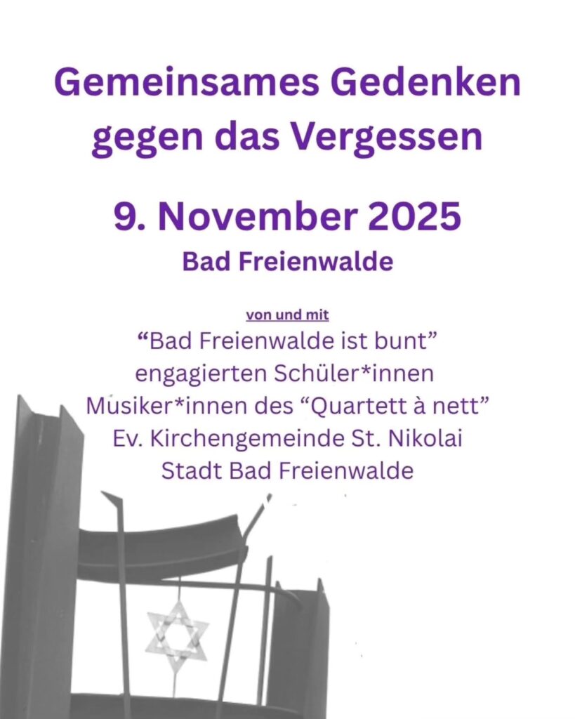 Wir laden zum Stolperstein-Rundgang 16.00h Stolperstein-Rundgang Treffpunkt: Marktplatz “Bad Freienwalde ist bunt” mit engagierten Schüler*innen und Musiker*innen des “Quartett a […]
