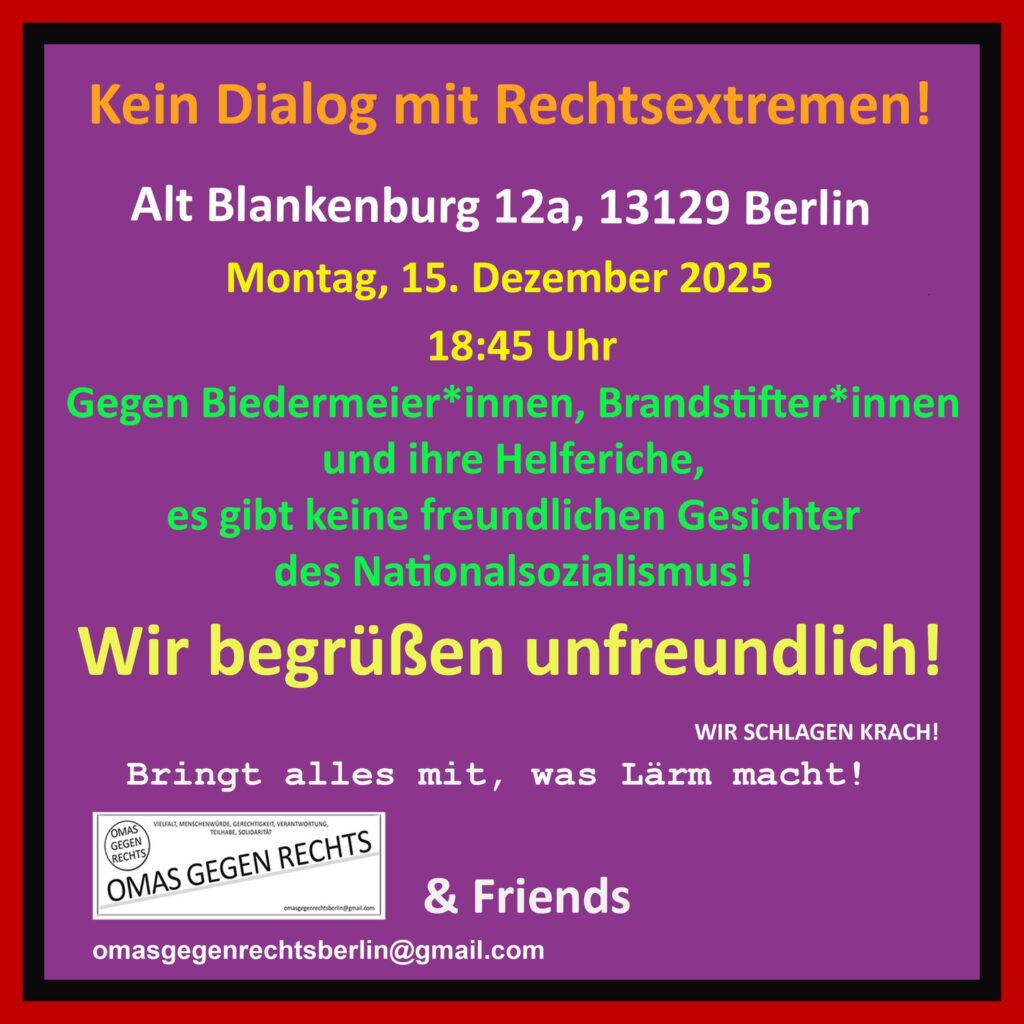Ab dem 2. November 2025 treffen wir uns jeden Sonntag von 16:00 bis 17:00 Uhr auf dem Bebelplatz in Berlin. […]
