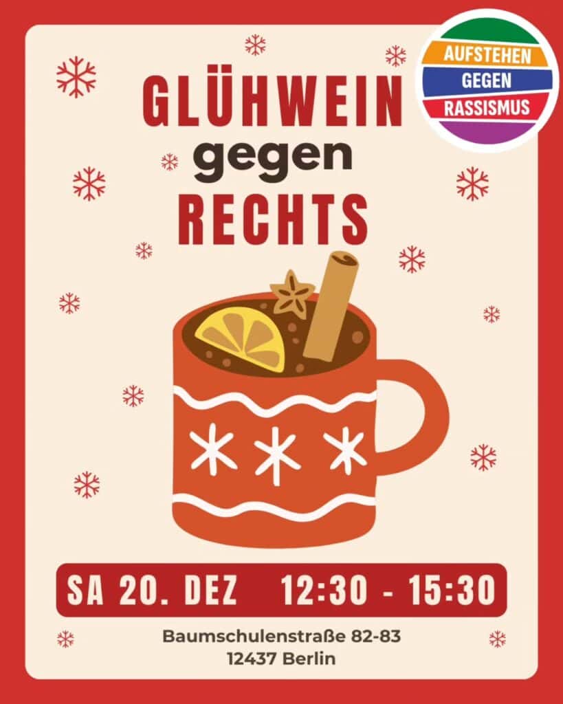 Wir wollen mit Euch gemeinsam gemütlich zusammenkommen und ein Jahr Aufstehen gegen Rassismus Treptow feiern, uns austauschen, vernetzen und eine