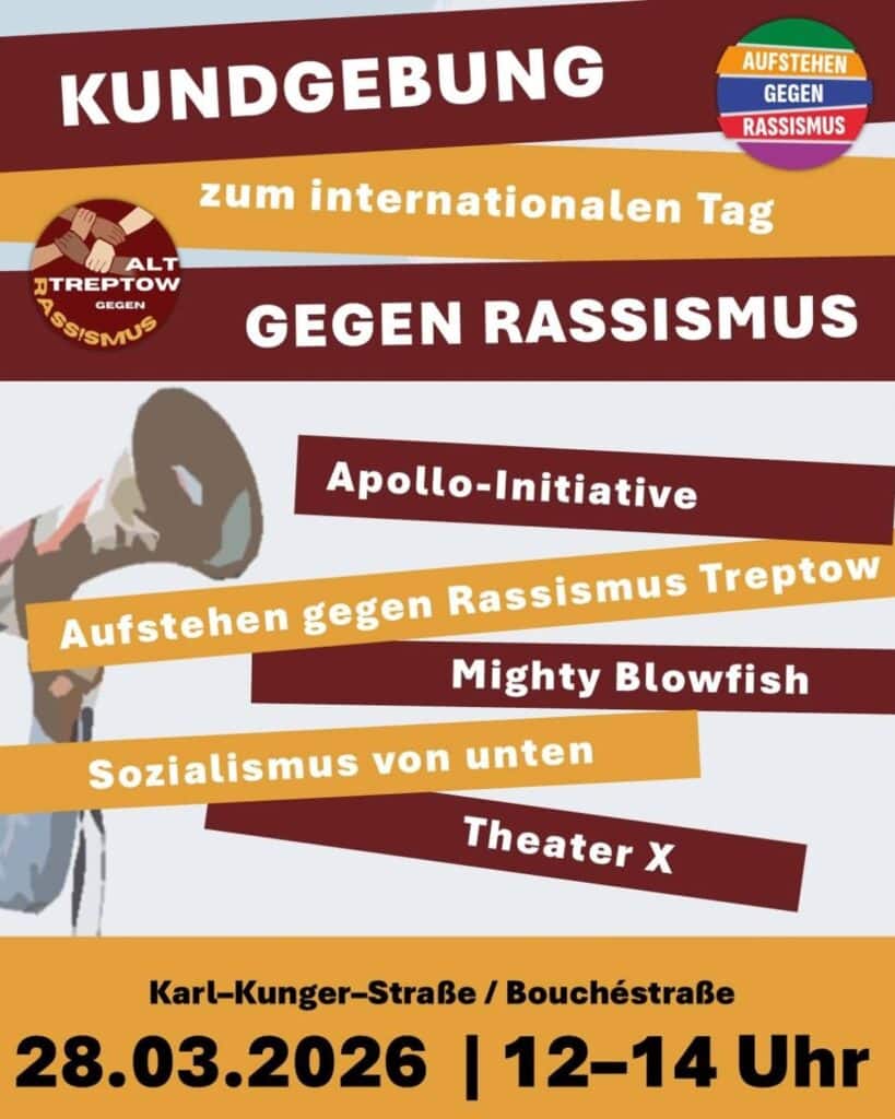 Apollo-Initiative Aufstehen gegen Rassismus Treptow Mighty Blowfish Sozialismus von unten Theater X