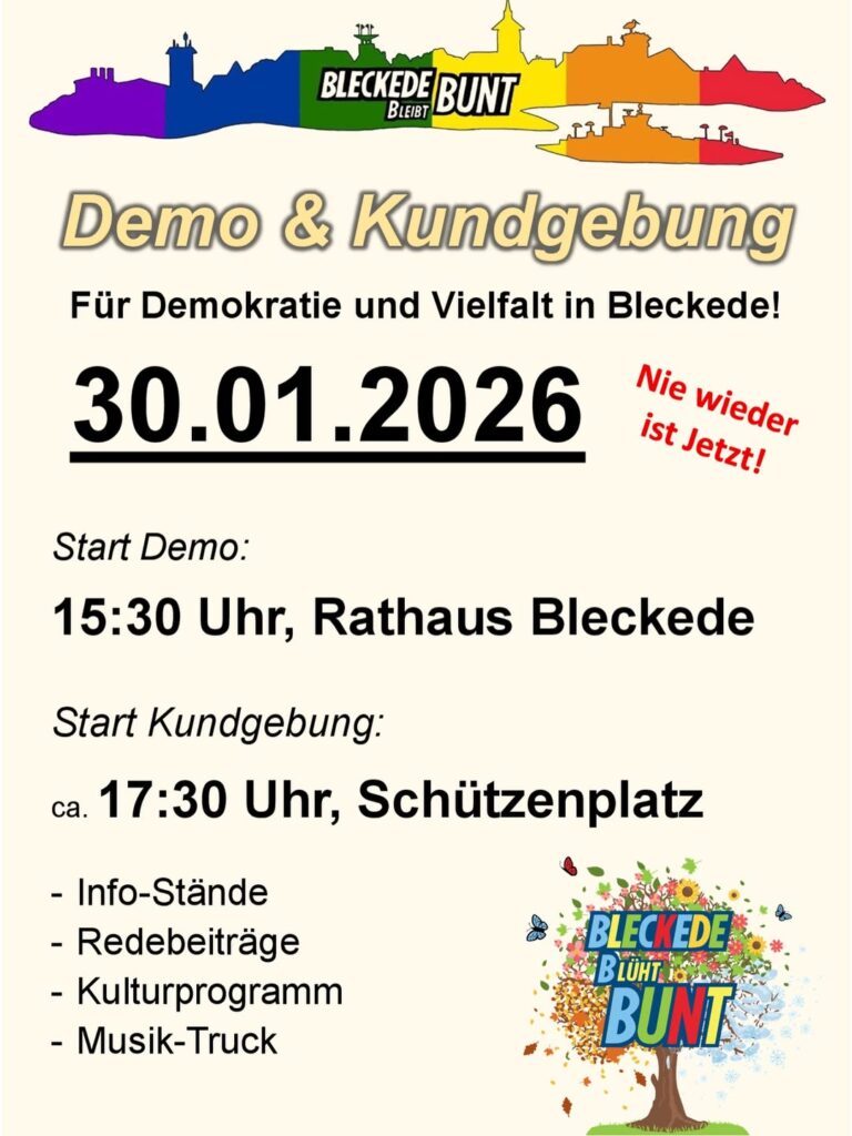Kommt zahlreich, bringt Freund:innen, Familie und Bekannte mit und setzt euch für Demokratie und Vielfalt in Bleckede ein! 15:30 Uhr […]