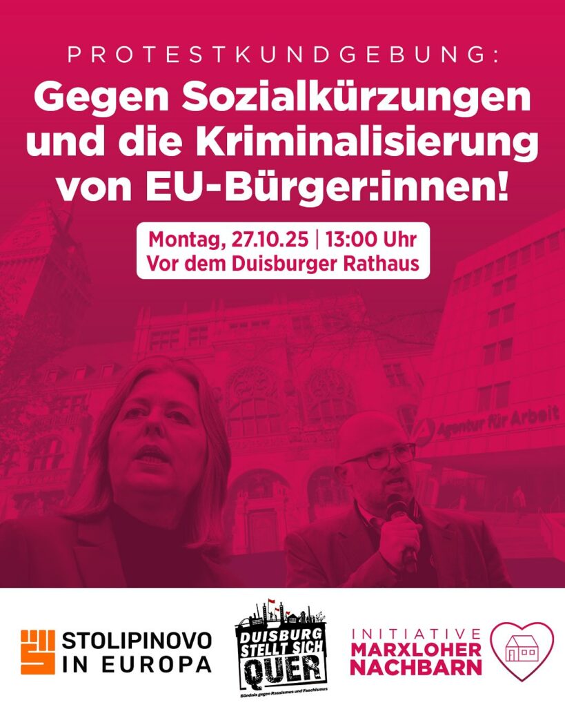 Am Montag protestieren wir gemeinsam gegen die geplanten Sozialkürzungen und die Kriminalisierung von Eu-Migrant:innen – kommt zum Rathaus! Am Montag
