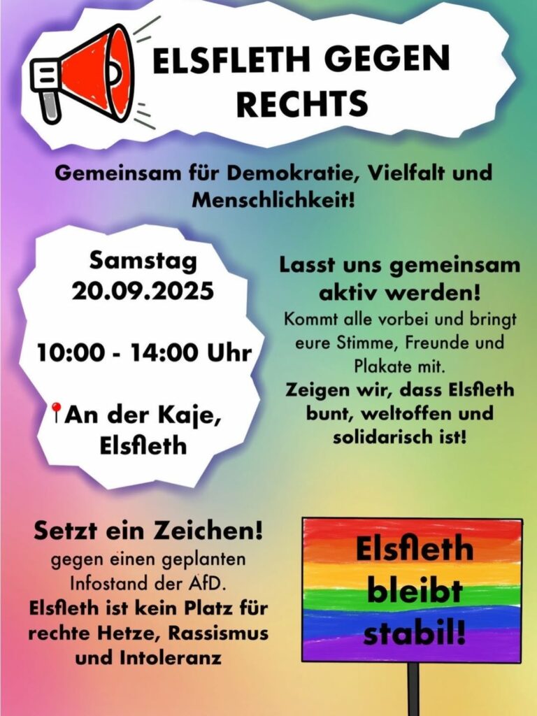 Gemeinsam für Demokratie, Vielfalt und Menschlichkeit! Setzt ein Zeichen! Gegen einen geplanten Infostand der AfD. Eslfleth ist kein Platz für […]