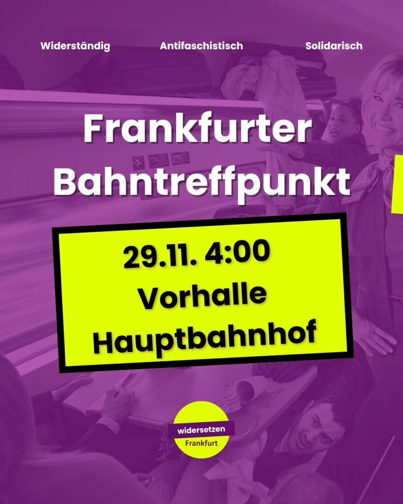 Wenn ihr mit der Bahn nach Gießen fahren wollt, kommt am 29.11. um 4 Uhr morgens zum Hauptbahnhof! Wir treffen