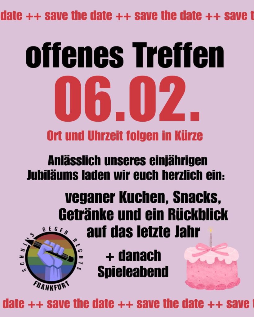 Save the date! Schon fast ein Jahr seit der Gründung unserer Ortsgruppe! Am 06.02. feiern wir unseren Geburtstag und was