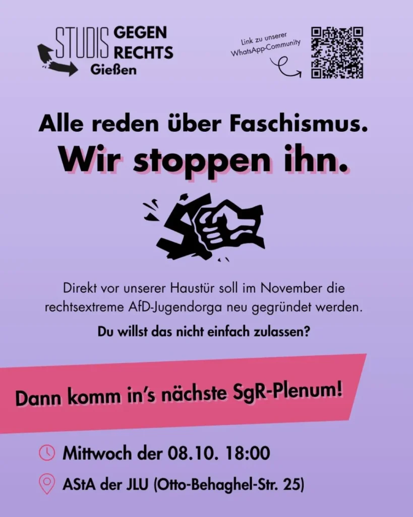 Am 29. und 30. November will sich die faschistische AfD-Jugend ausgerechnet bei uns in Gießen neu gründen. Die nächsten Wochen