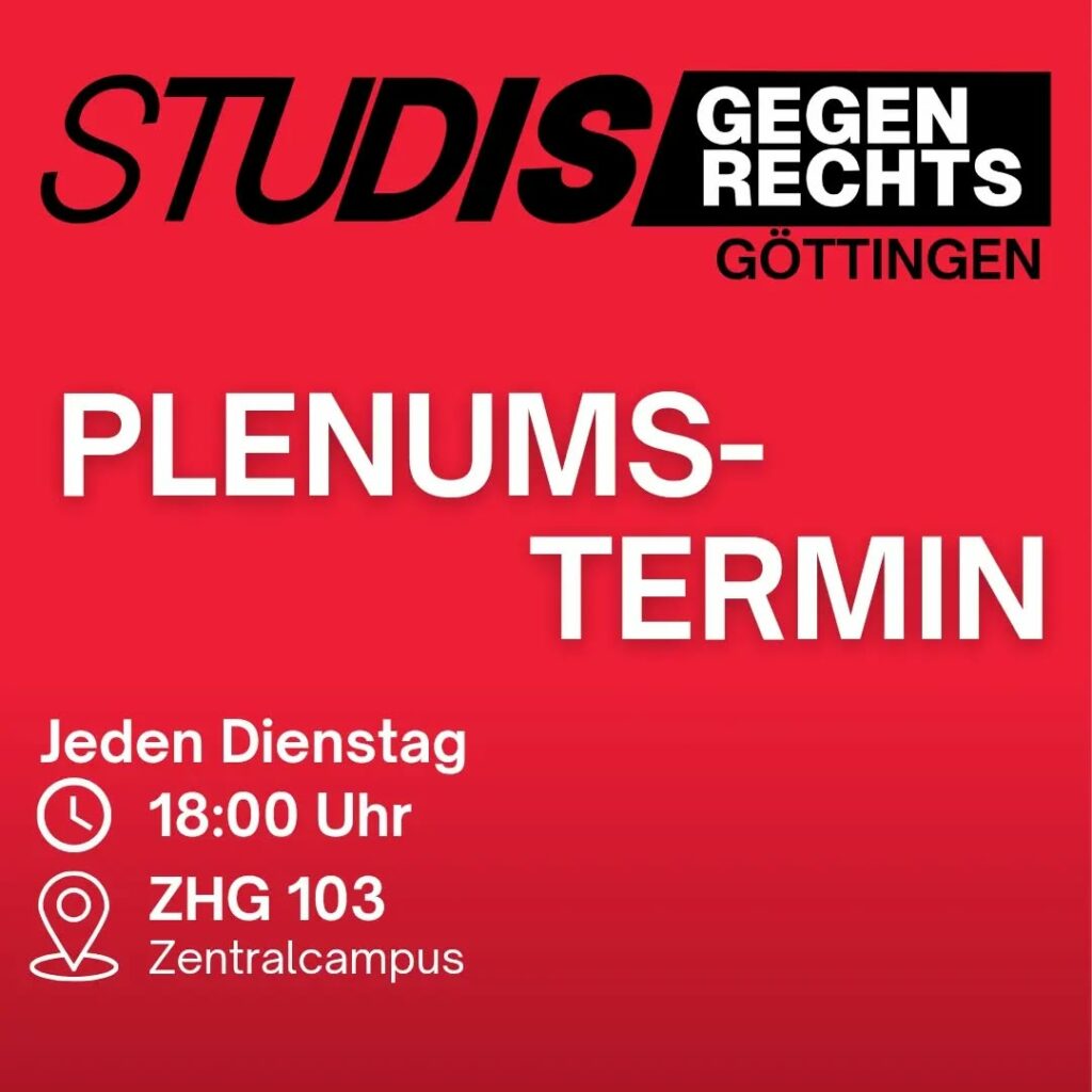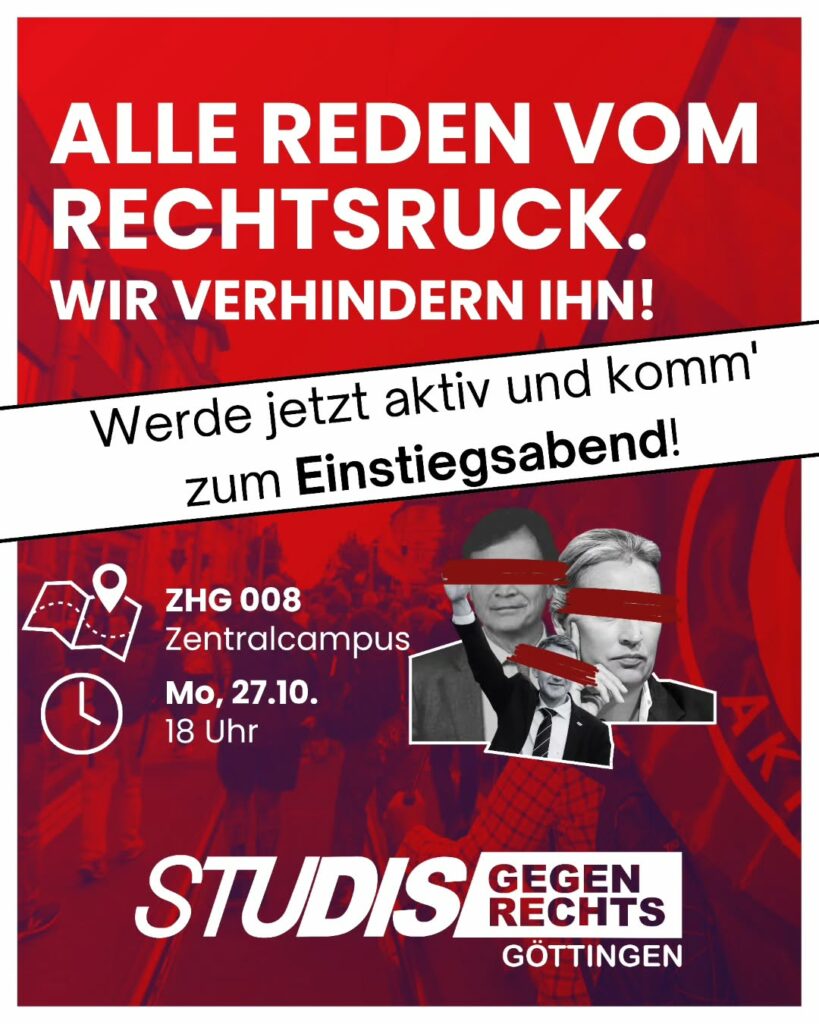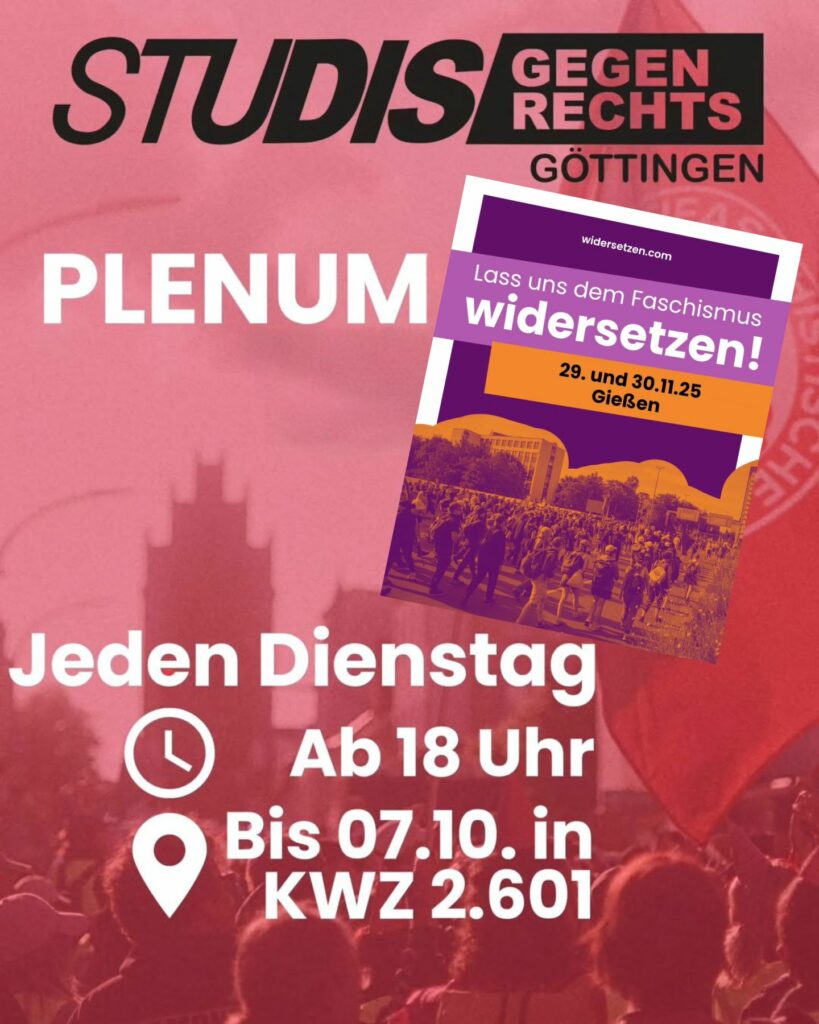 We want You for Studis Gegen Rechts! Gemeinsam mit hunderten Weiteren aus Göttingen wollen wir am 29.11. nach Gießen fahren