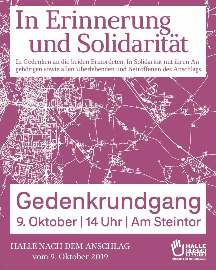 Im Gedenken an die beiden Ermordeten und in Solidarität mit ihren Angehörigen, den Überlebenden und Betroffenen des antisemitischen, rassistischen und