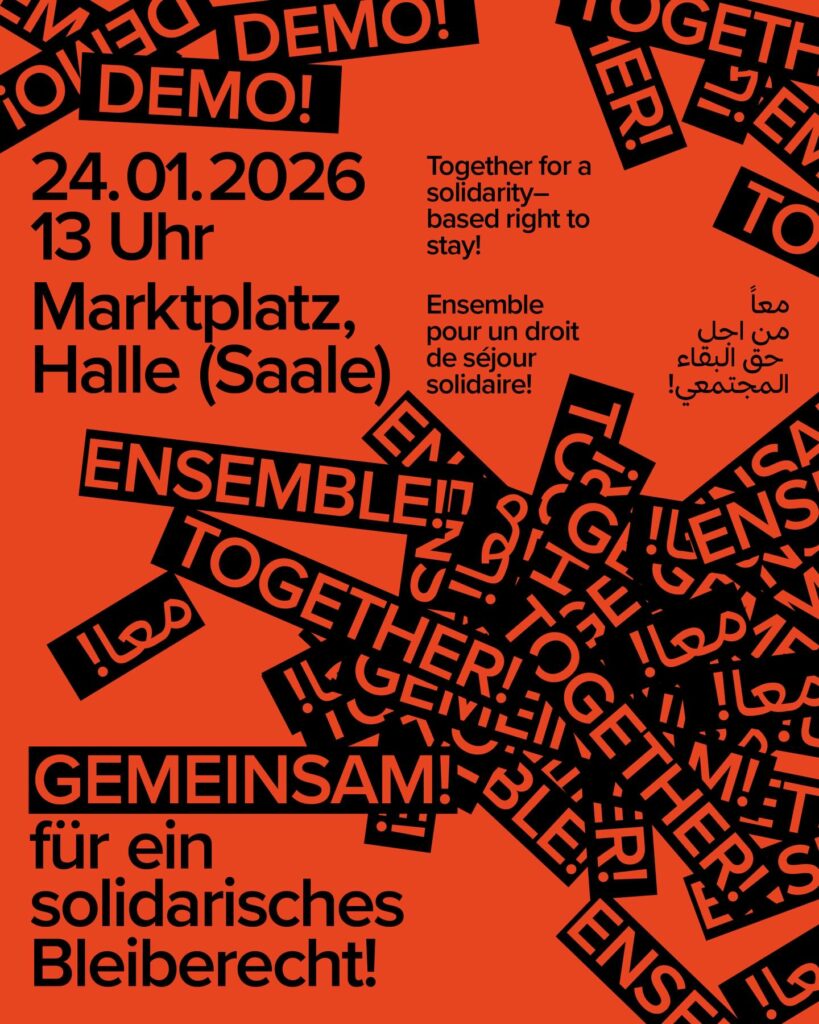 Lasst uns gemeinsam auf die Straße gehen für ein solidarisches Bleiberecht! Together, we are demonstrating for better conditions for people