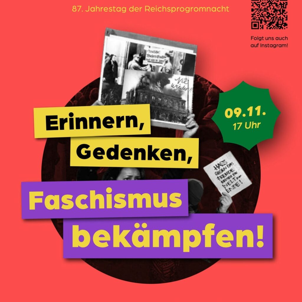Am 9. November jährt sich die Reichspogromnacht zum 87. Mal. Wir möchten Eltern, Kinder und alle anderen einladen, gemeinsam daran