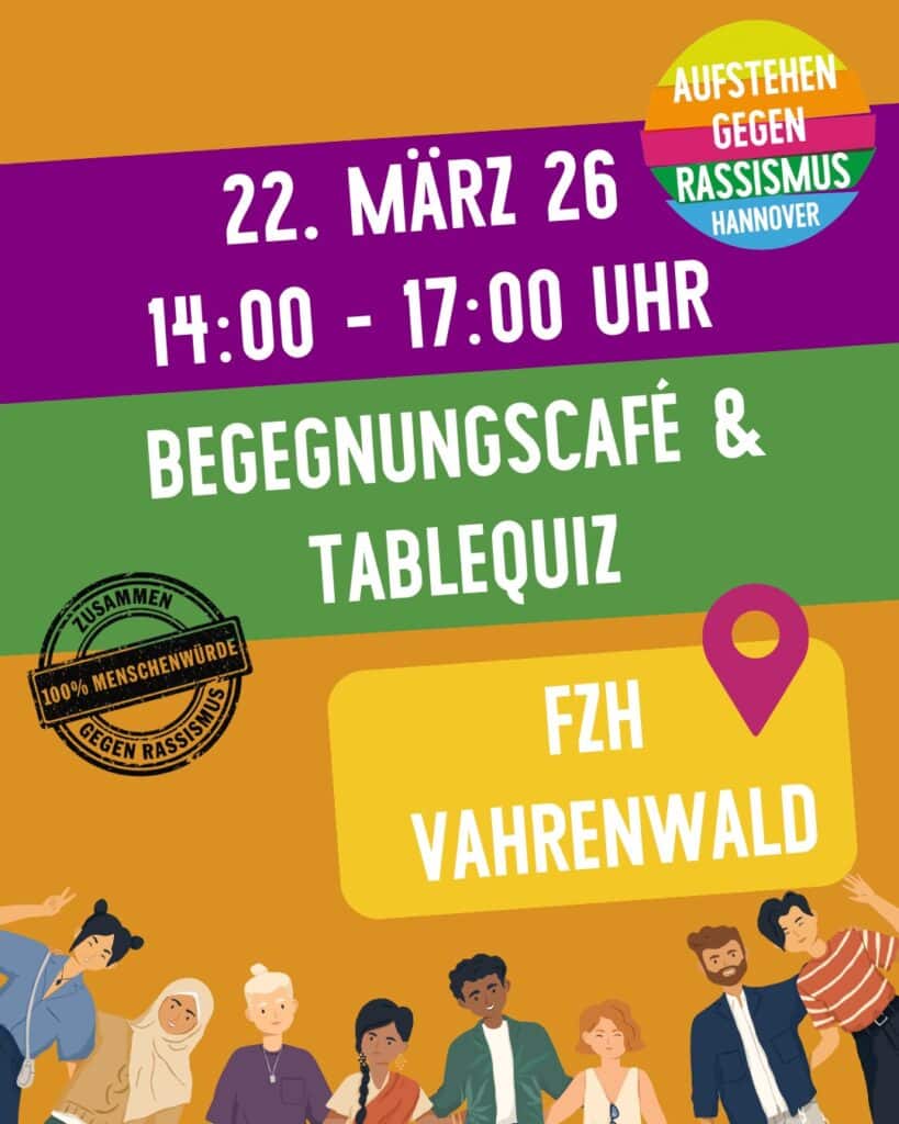 Im Café des Freizeitheims Vahrenwald veranstaltet das Bündnis “Aufstehen gegen Rassismus Hannover” ein Begegnungscafé für Menschen mit und ohne Migrationshintergrund,