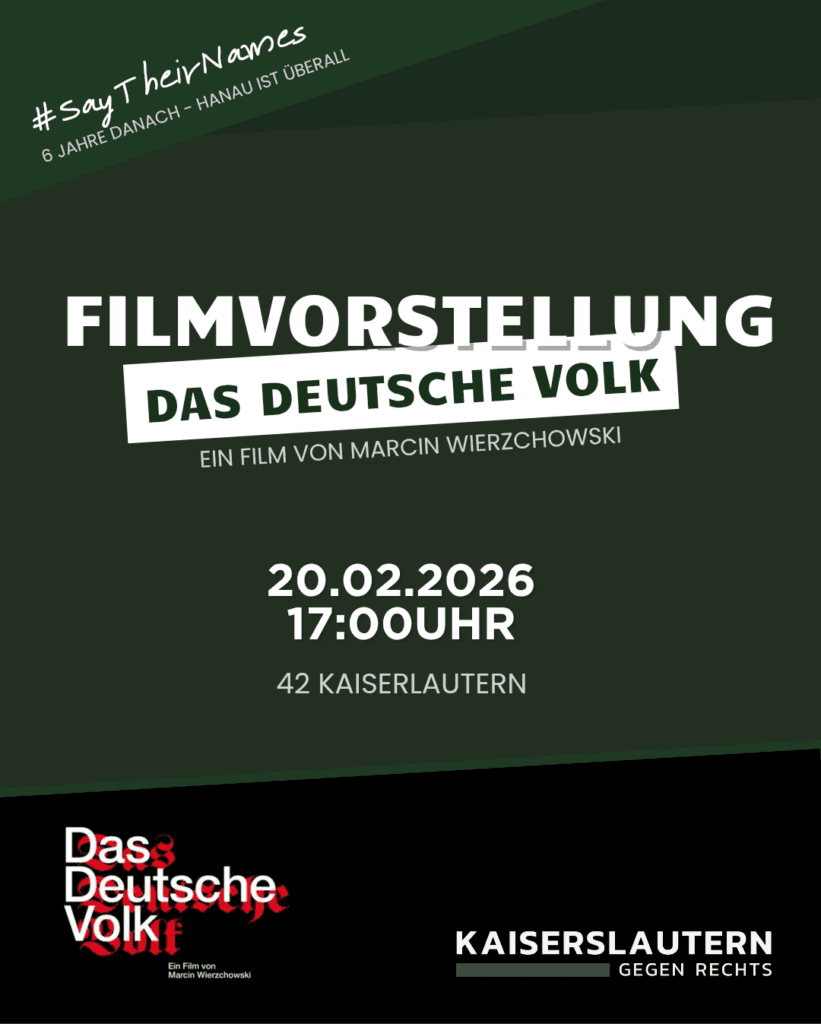 Am Freitag zeigt das Bündnis Kaiserslautern gegen Rechts den Dokumentarfilm „Das Deutsche Volk“ von Marcin Wierzchowski im “42 Kaiserslautern”. Der