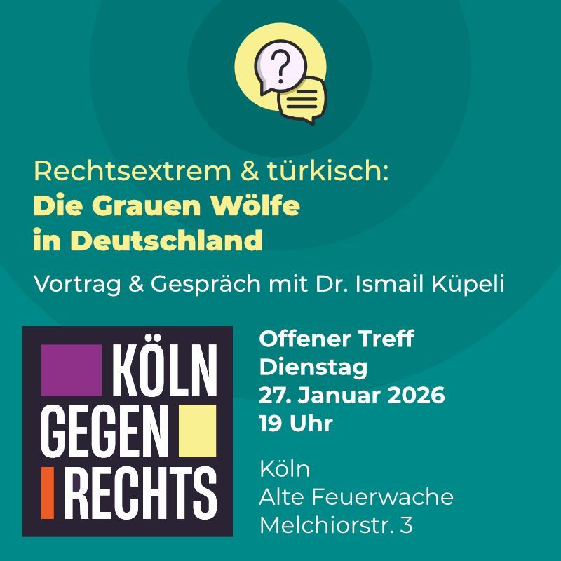 Vortrag & Gespräch beim Offenen Treff von Köln gegen Rechts mit Dr. Ismail Küpeli Der türkische Rechtsextremismus stellt mit etwa