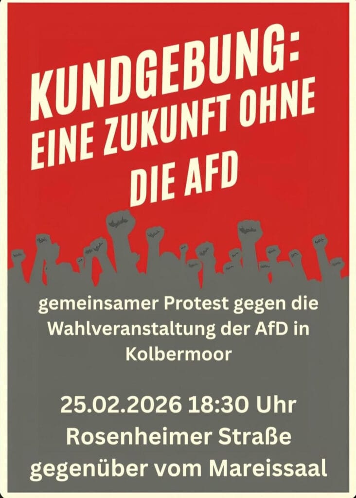Gemeinsamer Protest gegen die Wahlveranstaltung der AfD in Kolbermoor Rosenheimer Straße gegenüber vom Mareis Saal