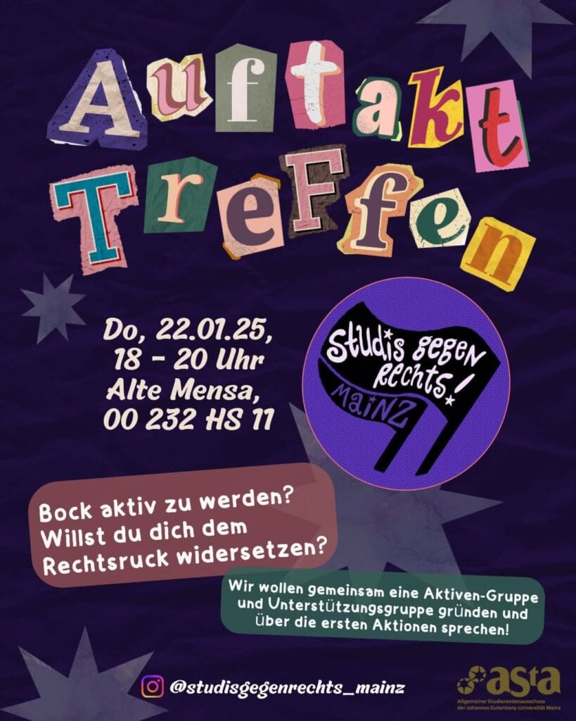 Die Studis gegen Rechts gründen sich neu! Komm zum Auftakttreffen und sei beim Wiederaufbau dabei! Wir wollen wir zusammen über