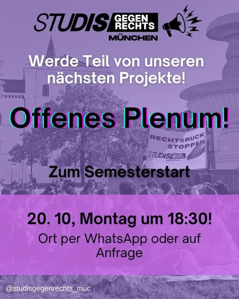 Nächstes Plenum am Dienstag. Kommt gerne vorbei, wenn ihr euch einbringen möchtet!