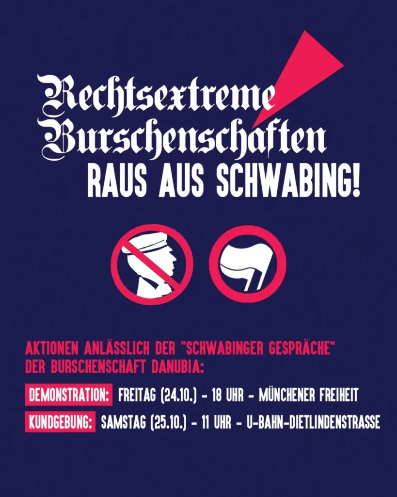 Dieses Wochenende finden die sogenannten “Schwabinger Gespräche” in der Burschenschaft Danubia statt. Die Gespräche dienen als zentrales Vernetzungsevent der extremen