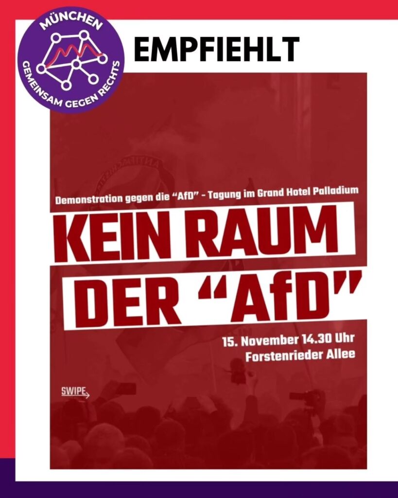 Demonstration gegen die Tagung der “AfD”-Schiedsgerichte im Grand Hotel Palladium! Die “AfD” will vom 14. bis 16. November 2025 in