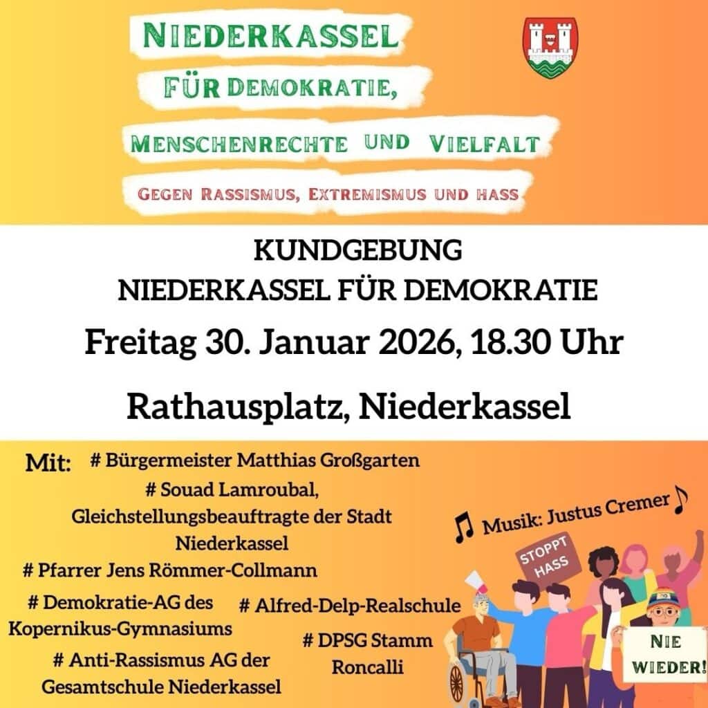 Niederkassel steht zusammen: Gemeinsam für Demokratie, Menschenrechte und Vielfalt! Gegen Rassismus, Extremismus und Hass! Mit Beiträgen von: Bürgermeister Matthias Großgarten […]
