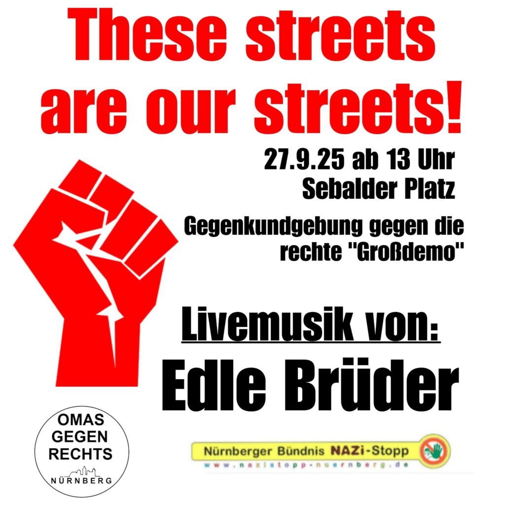 These satreets are our streets! Für Samstag hat sich der peinliche Haufen “Gemeinsam für Deutschland” wieder in Nürnberg angekundigt. Zeigt