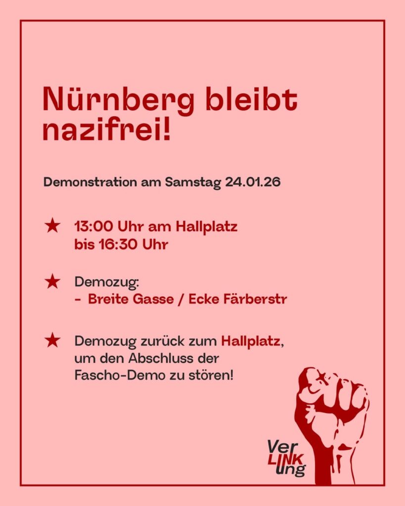 Nürnberg bleibt nazifrei! Hallplatz 13:00 Uhr Verlinkungnbg Quelle Es geht am Samstag erneut auf die Straße! Das extrem rechte „Team