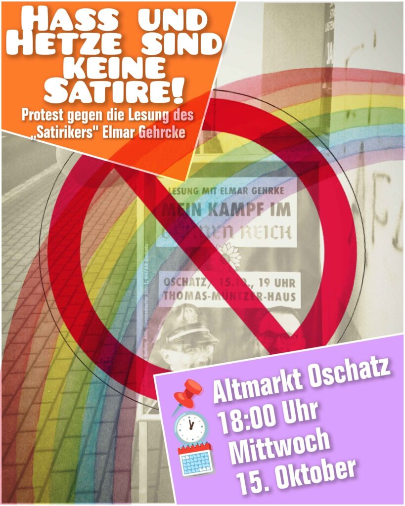 Protest gegen die AfD-Lesung des “Satirikers” Elmar Gehrke. Altmarkt, Höhe Stadthalle Thomas-Müntzer-Haus