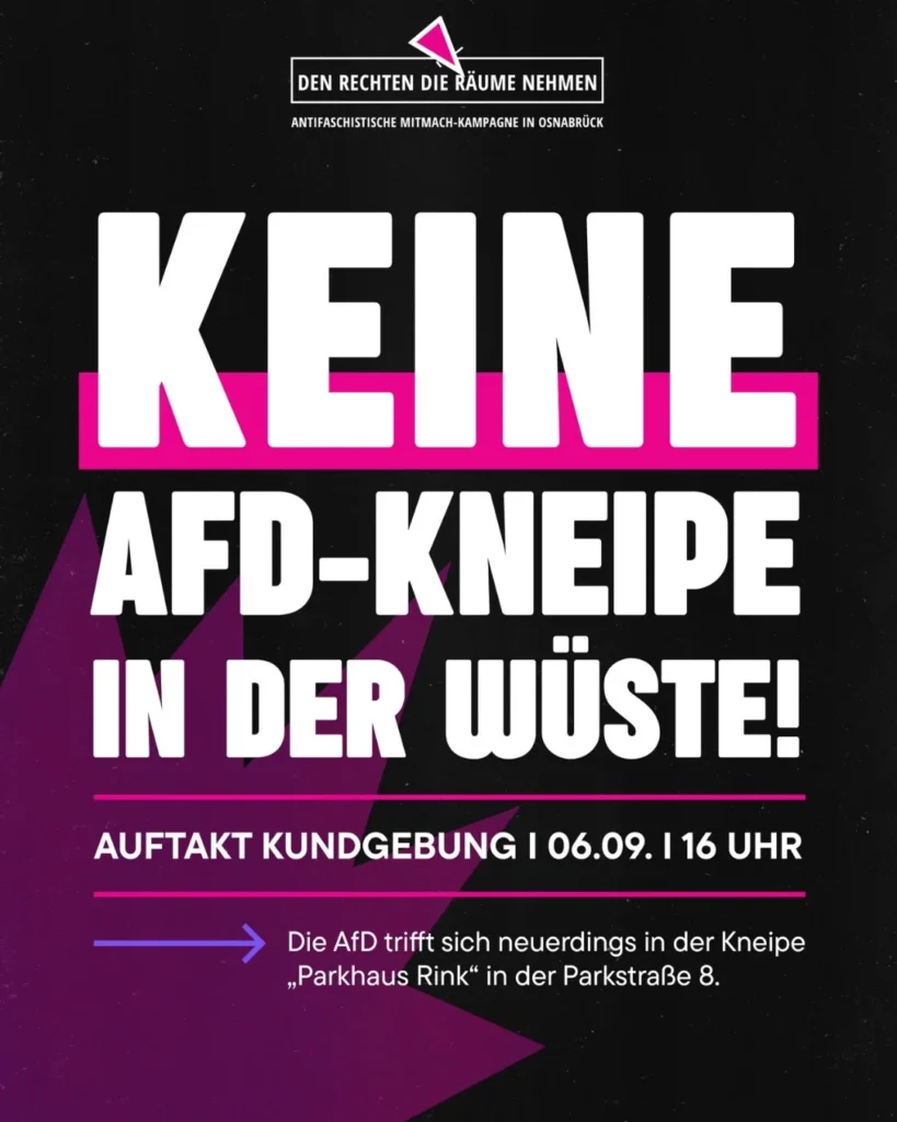 Die Kneipe “Parkhaus Rink” im Osnabrücker Stadtteil Wüste hat sich der AfD als neue Stammkneipe angeboten. Haben wir noch vor