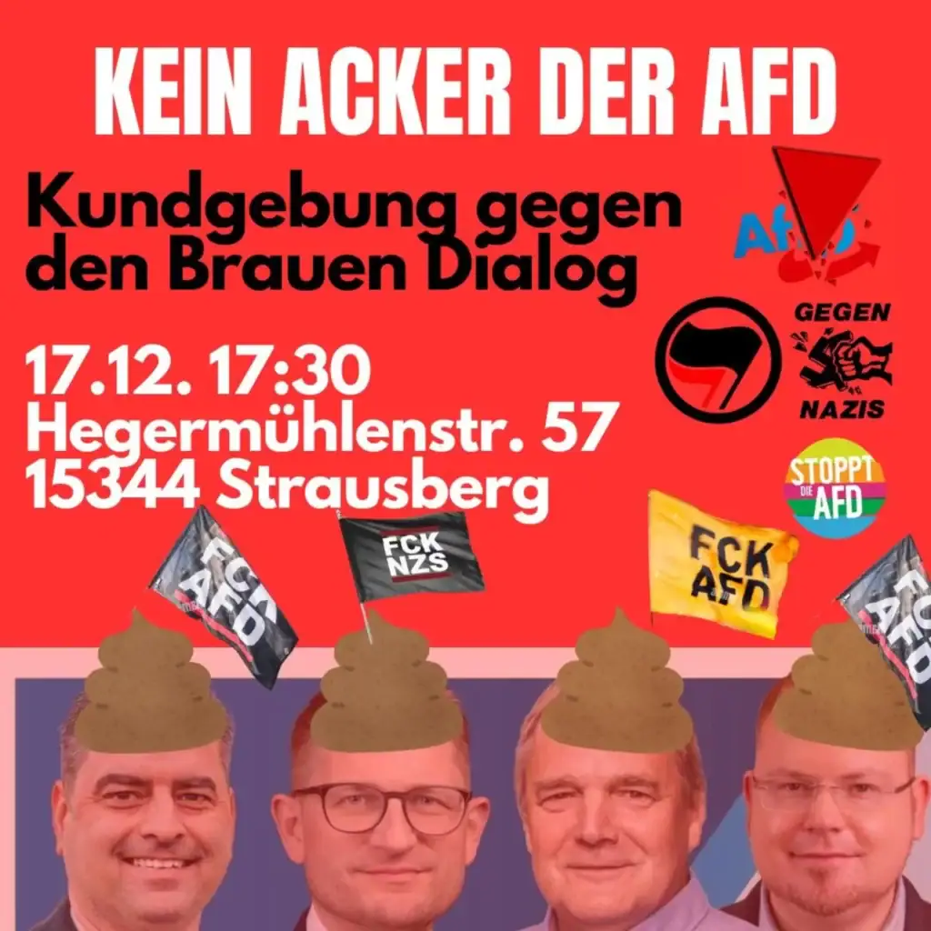 Kundgebung gegen den braunen “Bürgerdialog” der Afnee in Strausberg. Wir sehen uns am Mittwoch gegenüber der Mehrzweckhalle! Dennis Panser (Bürgermeister […]