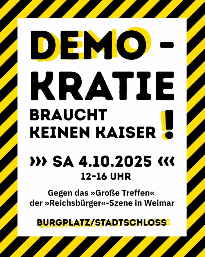 Gegen das “Große Treffen” der “Reichsbürger”-Szene in Weimar Am Samstag seid ihr gefragt. Wir brauchen alle Demokrat*innen auf der Straße