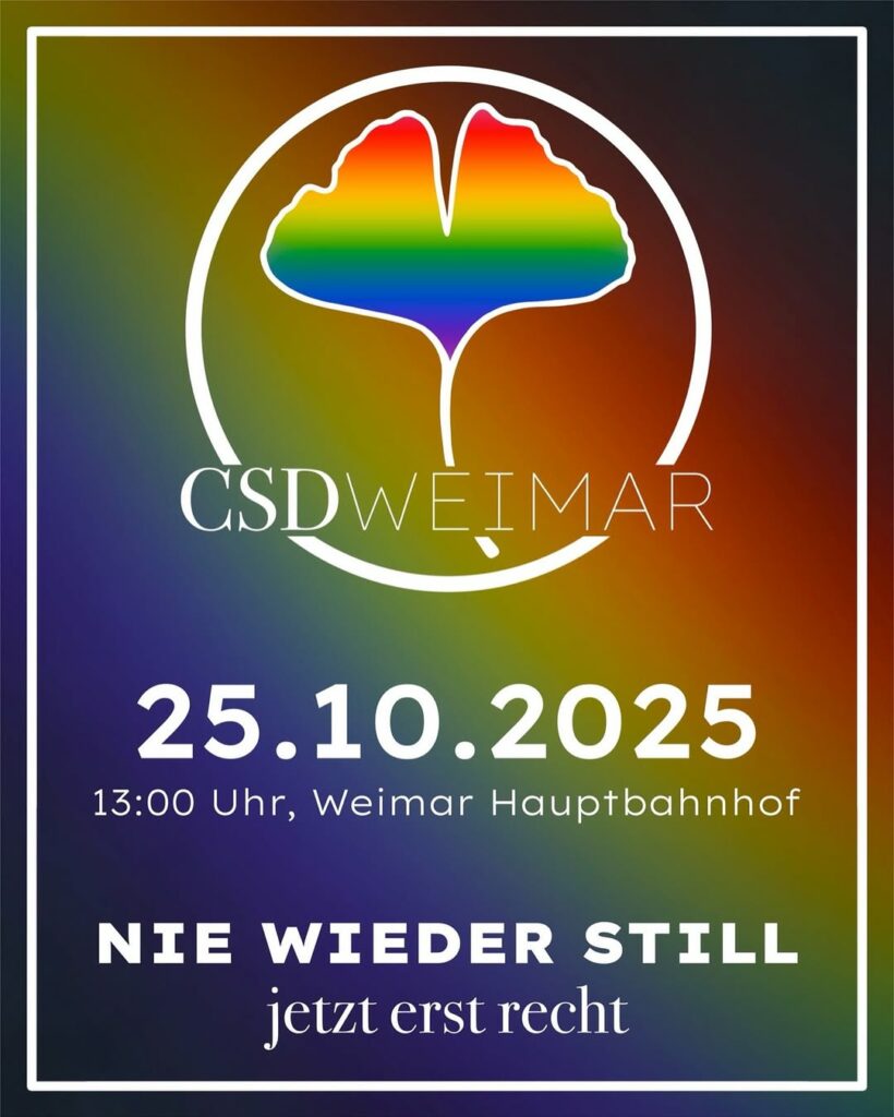 Sei dabei beim CSD Weimar 2025! Gemeinsam feiern wir Vielfalt, Liebe und Gleichberechtigung- laut, bunt und sichtbar! Komm vorbei und