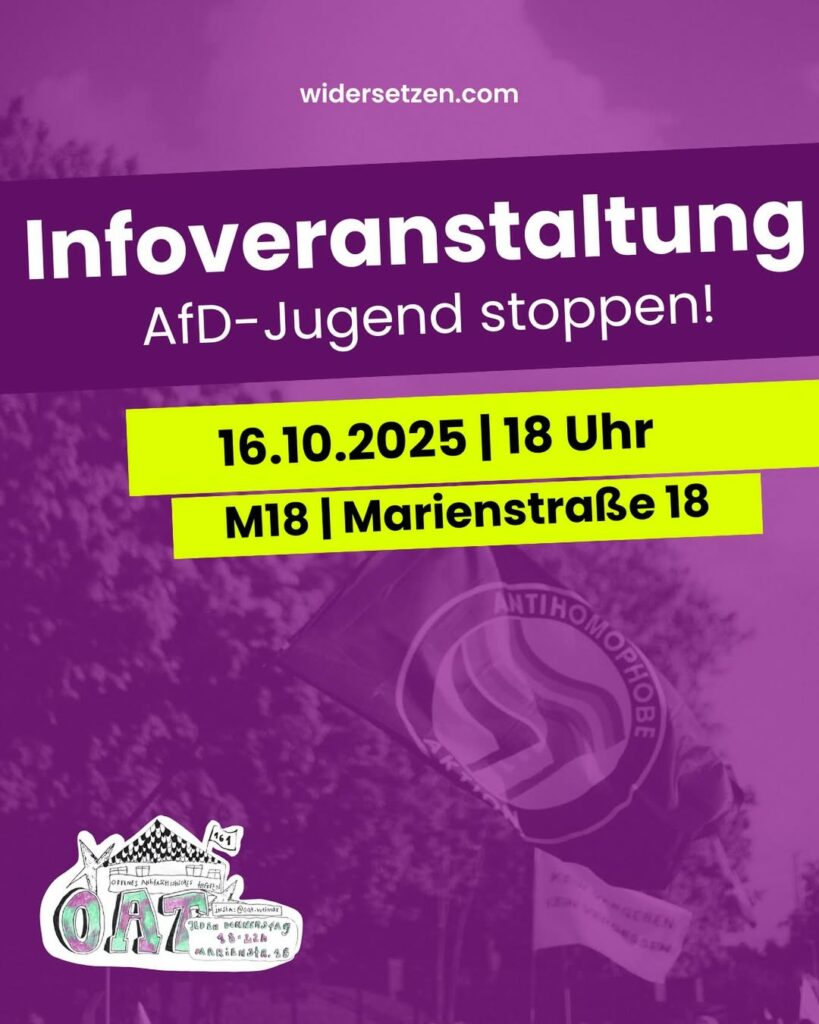 Wir brauchen dich, um am 29.11 den Neugründungskongress der faschistischen AfD-Jugend in Gießen zu verhindern! Komm am Donnerstag zu unserer