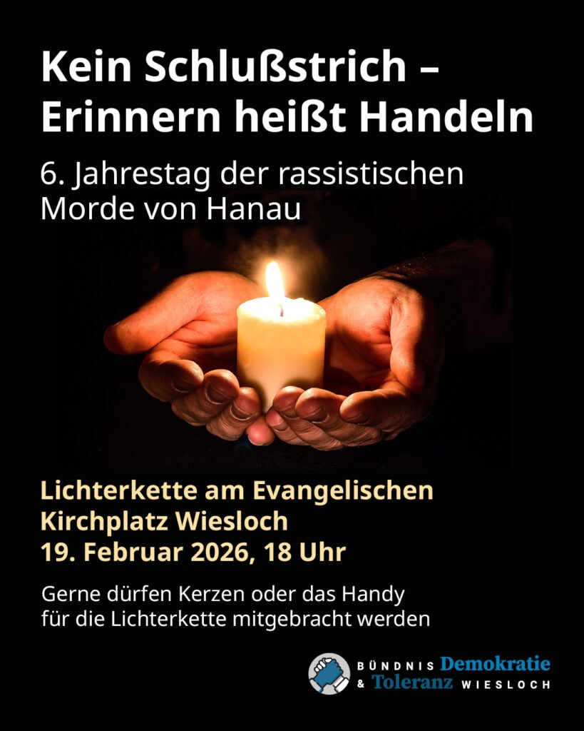 Lichterkette zum Gedenken an die Opfer von Hanau „Kein Schlussstrich – Erinnern heißt Handeln“ Am 19. Februar jährt sich zum […]